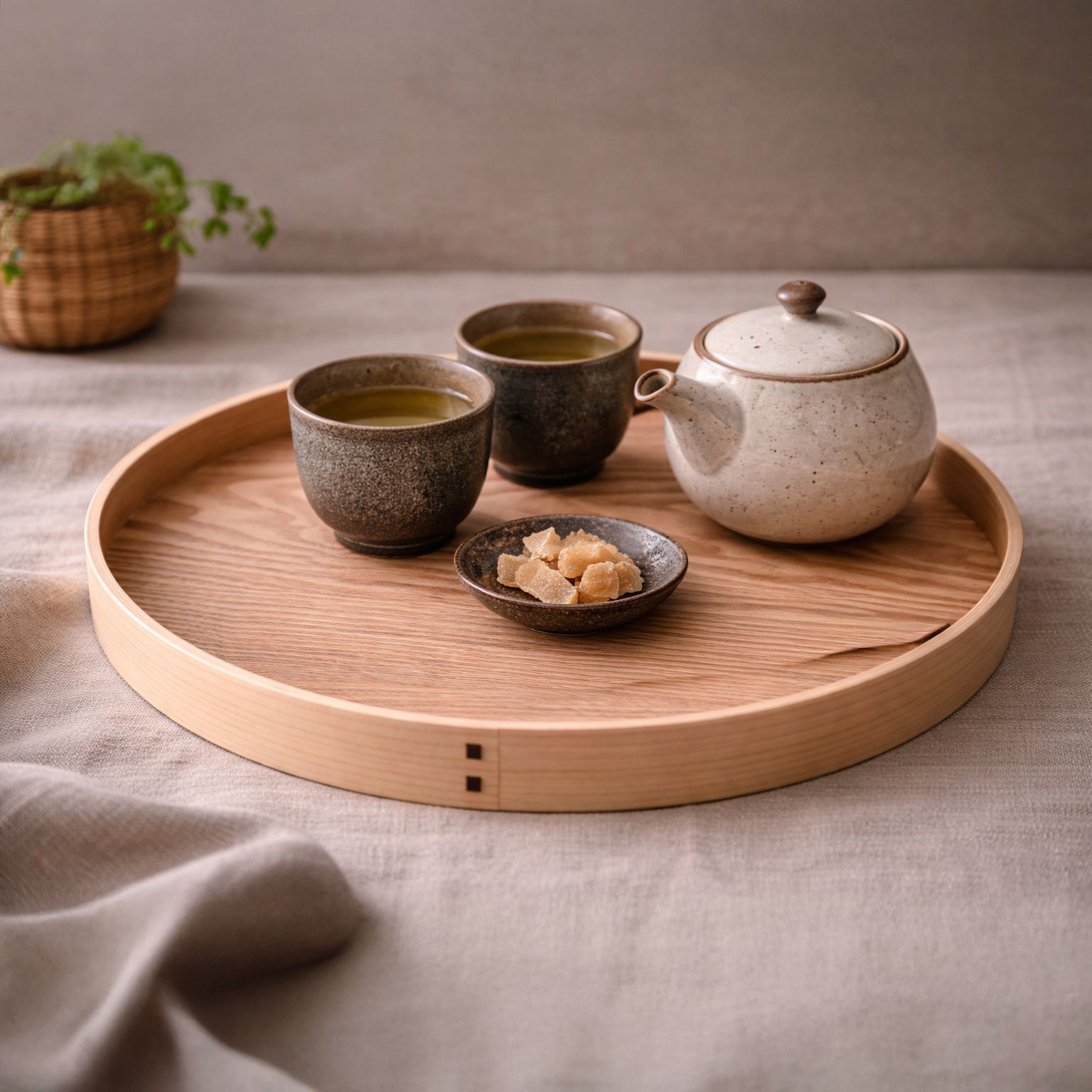 Crafted in Japan using traditional wappa techniques, this round wooden tray embodies quiet craftsmanship and functional beauty. Made from finely grained Japanese wood, the tray features a softly raised rim and seamless joinery, allowing the natural grain to take centre stage.